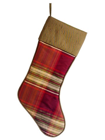20" Plaid Stocking Green Burgundy (Pack of 6) Feature