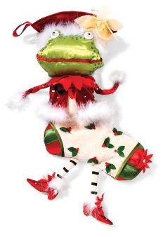 Frog collectors will love the Mrs. Frog Stocking by Patience Brewster's Krinkles Collection. The plush frog wears a red jacket and hat trimmed with white marabou feathers. Manufactured by Department 56.