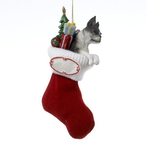 Pack of 6 Boston Terrier in Stocking Christmas Ornaments for Personalization by KSA