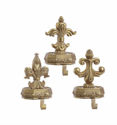 Set of 3 Ornately Detailed Gilded 9" Christmas Stocking Holders Feature