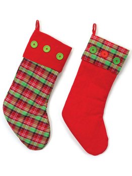 6 Christmas Traditions Red & Green Plaid Buttons Cuffed Christmas Stockings 19" Feature
