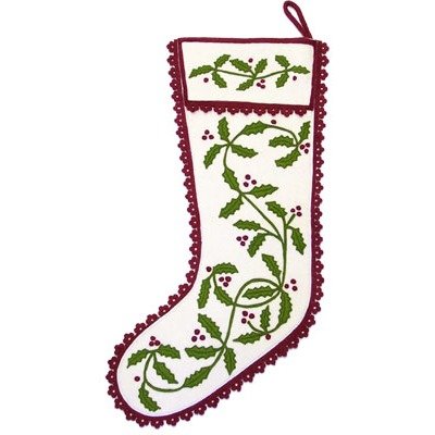 Holly Garland Stocking in Cranberry and White Feature