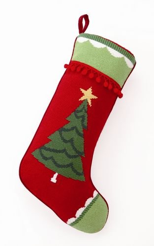 TRIM A DARK GREEN TREE NEEDLE POINT STOCKING 11X18" 100% WOOL & COTTON Feature