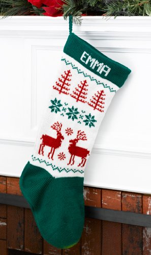 Wool Christmas Stocking Personalized Green Reindeer