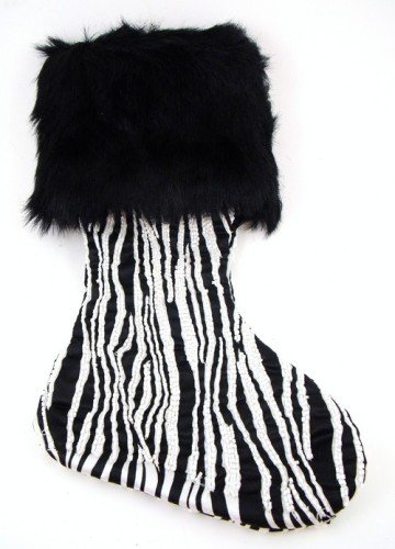 Gone Wild Jungle Animal Zebra Print Beaded Faux Fur Holiday Christmas Stocking.Made of polyester.Stocking approximately 17 inches x 8 inches.Faux fur and beading trim..