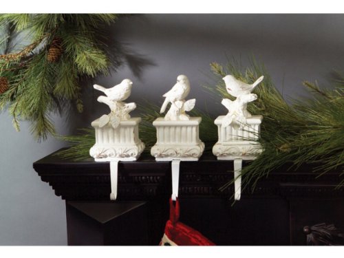 Set of 3 Snow Drift White Bird & Branch Pedestal Christmas Stocking Holders 10"