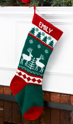 Wool Christmas Stocking Personalized Diamond Reindeer
