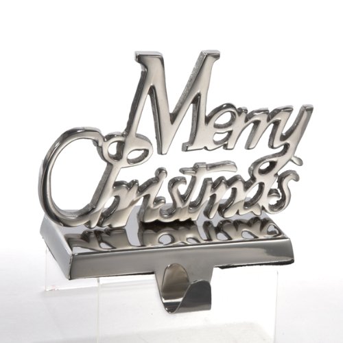 Pack of 2 Holiday Shiny Silver a?oeMerry Christmasa?? Stocking Holders 8a?? Feature