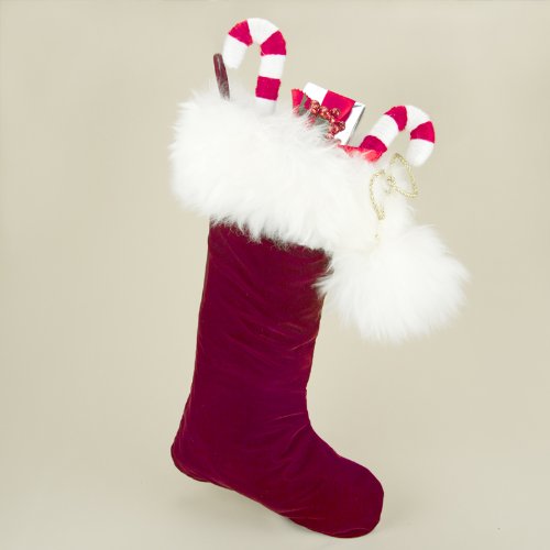 Rudolph Wine Velvet and Genuine Lamb Fur Reversible Stocking Feature