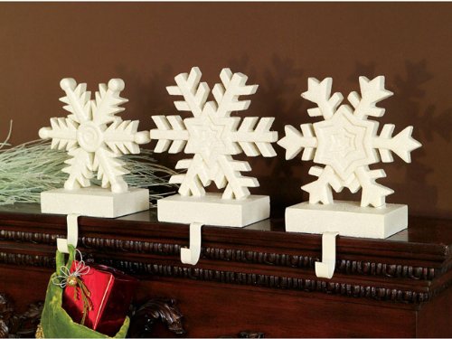 Set of 3 Modern Lodge Stone Snowflake Christmas Mantle Stocking Holders 10" Feature