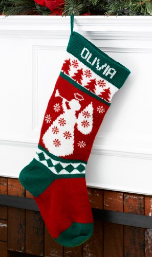 Wool Christmas Stocking Personalized Diamond Angel