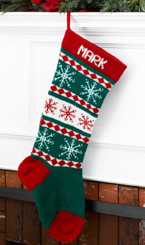 Wool Christmas Stocking Personalized Red Snowflakes Feature